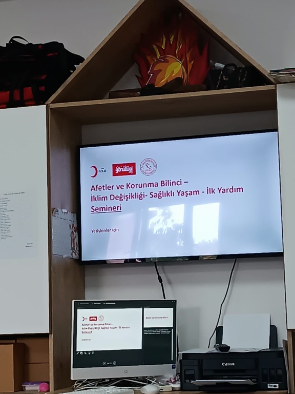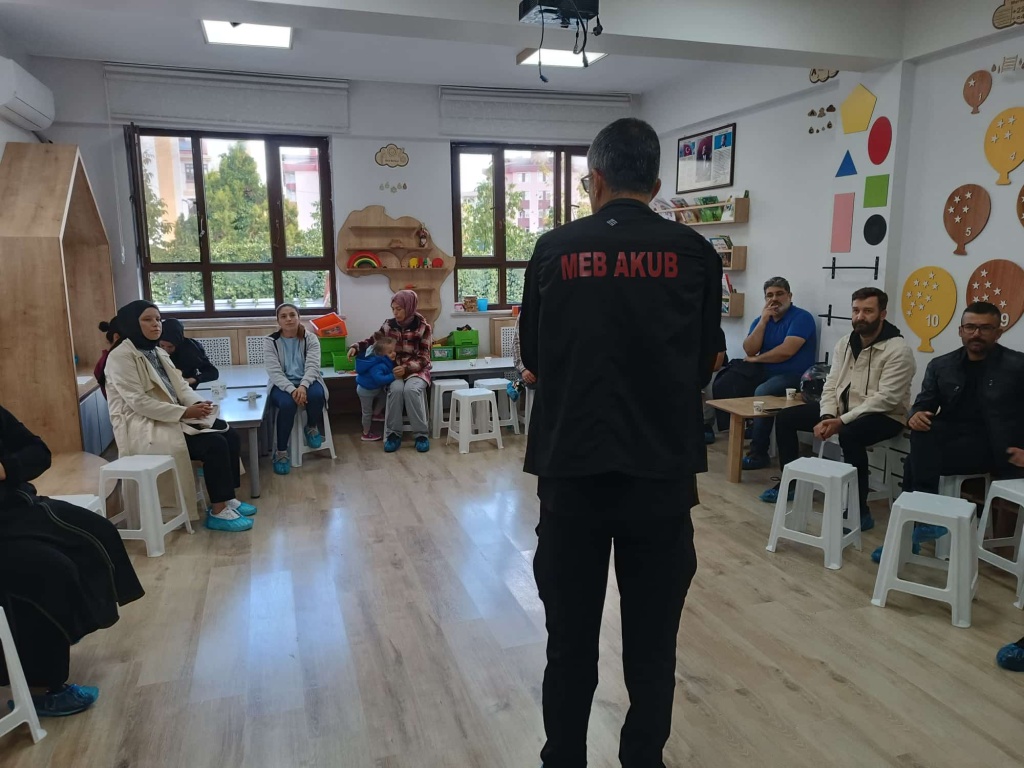 MEB AKUB Lideri Alper Can tarafından; afetlerde eyleme geçme(öncesi-sırası-sonrası), önlemler, acil durumlar, iklim değişikliği vb. konularda velilerimize seminer verildi.