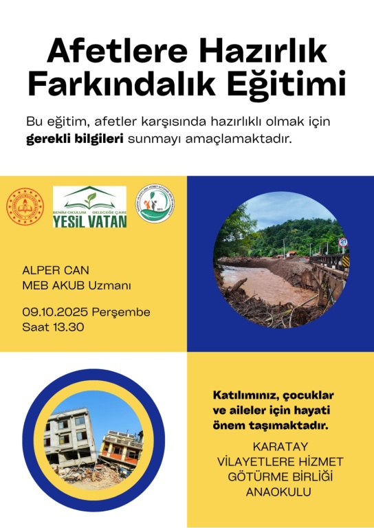 MEB'in yürüttüğü YEŞİL VATAN PROJESİ Ekim ayı temasında yer alan afetlere hazırlık ve farkındalık etkinliklerri öğrenci ve veli bazında gerçekleşti.